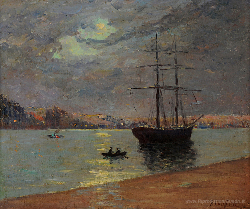 Ti offriamo una riproduzione artigianale su tela dell'opera famosa 'Nebbia di sera su Nantes' di Maxime Maufra, dal Museo delle Riproduzioni.