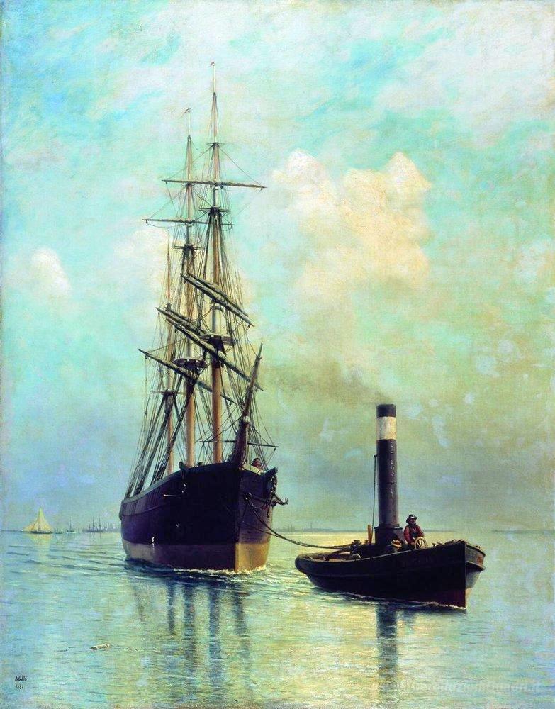 Ti offriamo una riproduzione artigianale su tela dell'opera famosa 'Nel Golfo di Finlandia' di Lev Lagorio, dal Museo delle Riproduzioni.