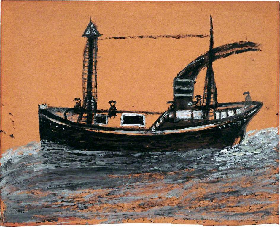 Ti offriamo una riproduzione artigianale su tela dell'opera famosa 'Nero Steamship' di Alfred Wallis, dal Museo delle Riproduzioni.