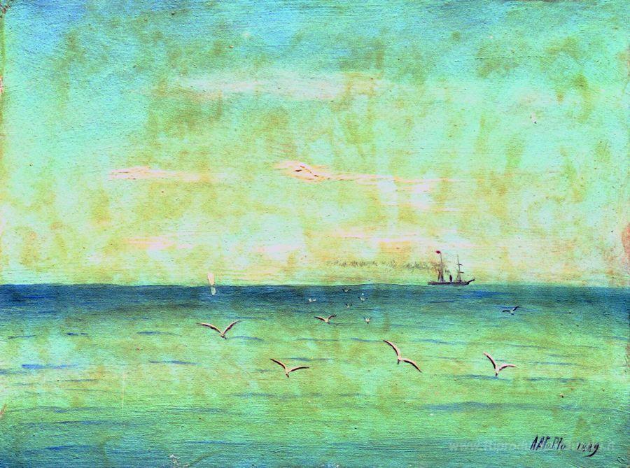 Ti offriamo una riproduzione artigianale su tela dell'opera famosa 'Paesaggio con gabbiani' di Lev Lagorio, dal Museo delle Riproduzioni.