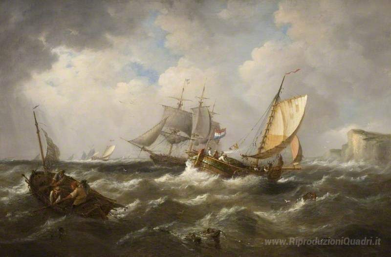 Ti offriamo una riproduzione artigianale su tela dell'opera famosa 'Paesaggio marino con Spedizione Francese' di James Webb , dal Museo delle Riproduzioni.