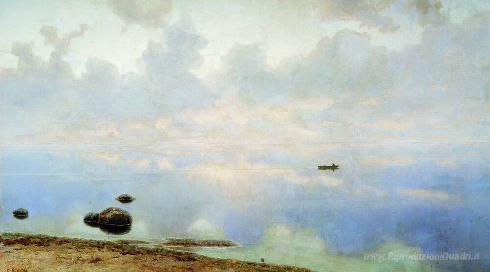 Ti offriamo una riproduzione artigianale su tela dell'opera famosa 'Paesaggio marino' di Efim Volkov, dal Museo delle Riproduzioni.
