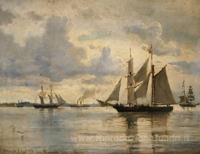 Ti offriamo una riproduzione artigianale su tela dell'opera famosa 'Paesaggio marino' di Ioannis Altamouras, dal Museo delle Riproduzioni.