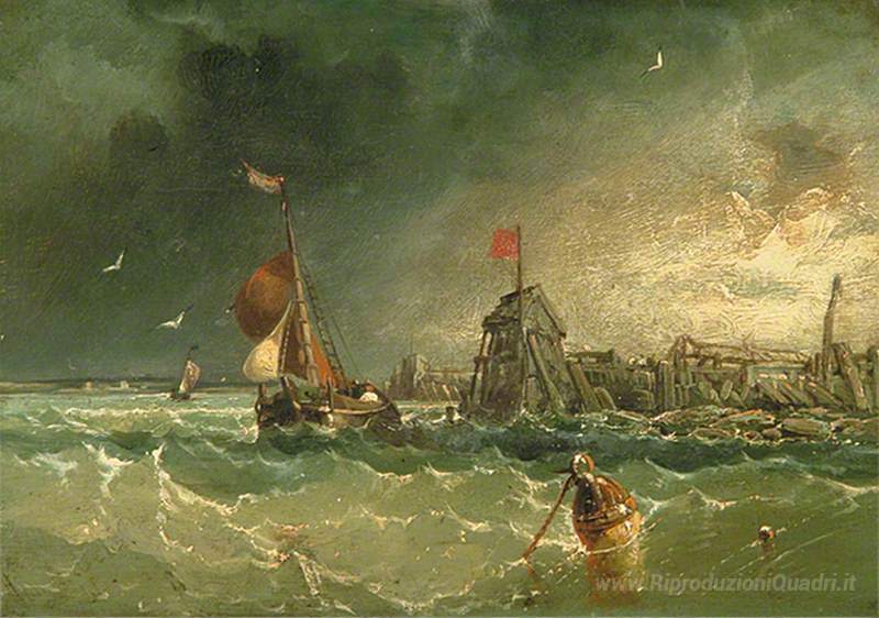 Ti offriamo una riproduzione artigianale su tela dell'opera famosa 'Paesaggio marino' di James Webb , dal Museo delle Riproduzioni.