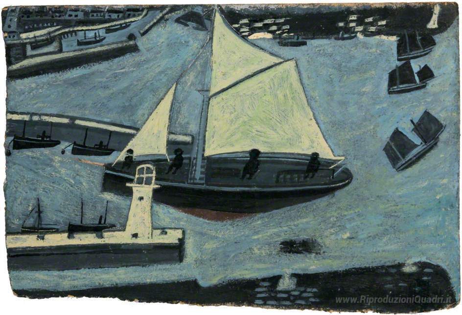 Ti offriamo una riproduzione artigianale su tela dell'opera famosa 'Penzance Harbour Entrance' di Alfred Wallis, dal Museo delle Riproduzioni.