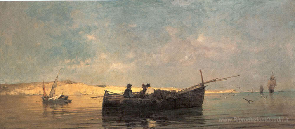 Scopri la magia di Peschereccio al crepuscolo, un'opera straordinaria realizzata dal maestro dell'impressionismo marino Konstantinos Volanakis. Nasce nel 1837 in Grecia e si afferma come uno dei pionieri del paesaggio marittimo, catturando l'essenza del mare e delle sue sfumature attraverso un uso magistrale del colore e della luce. Le sue opere evocano la serenità e la bellezza dei paesaggi costieri, trasformando ogni ambiente in un rifugio di tranquillità e armonia.