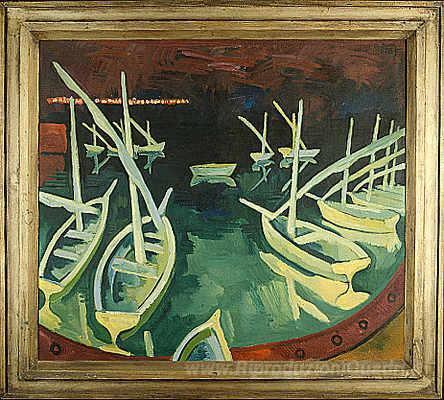 Ti offriamo una riproduzione artigianale su tela dell'opera famosa 'Pier at Night' di Karl Schmidt-Rottluff, dal Museo delle Riproduzioni.