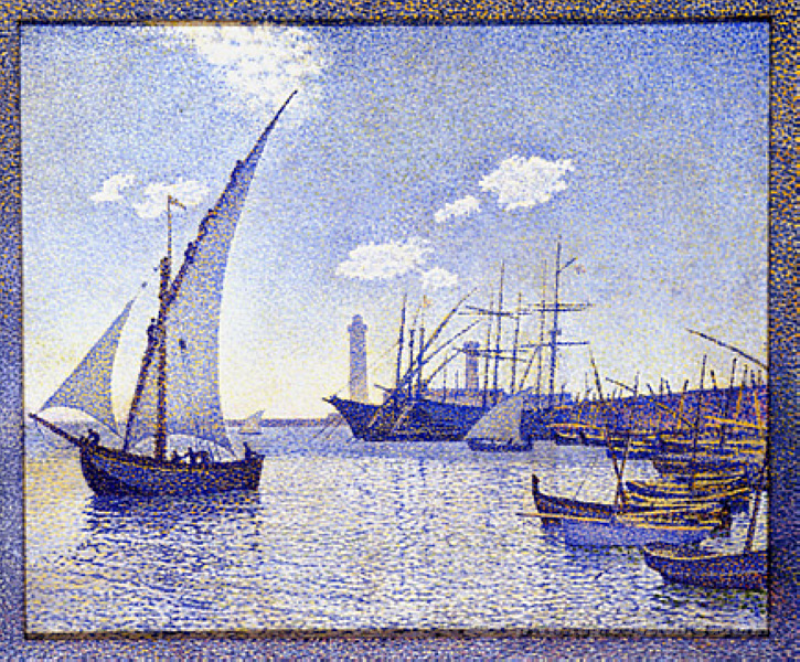 Ti offriamo una riproduzione artigianale su tela dell'opera famosa 'Port de Cette' di Theo van Rysselberghe, dal Museo delle Riproduzioni.