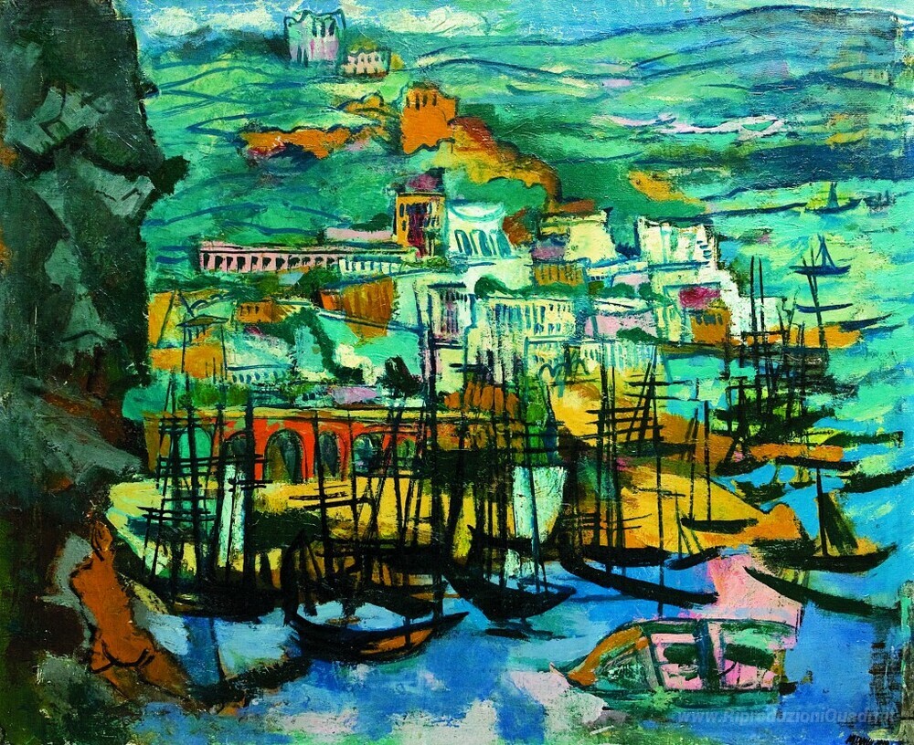 Ti offriamo una riproduzione artigianale su tela dell'opera famosa 'Porto' di Marcel Janco, dal Museo delle Riproduzioni.