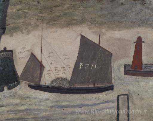 Ti offriamo una riproduzione artigianale su tela dell'opera famosa 'P.Z. 11' di Alfred Wallis, dal Museo delle Riproduzioni.