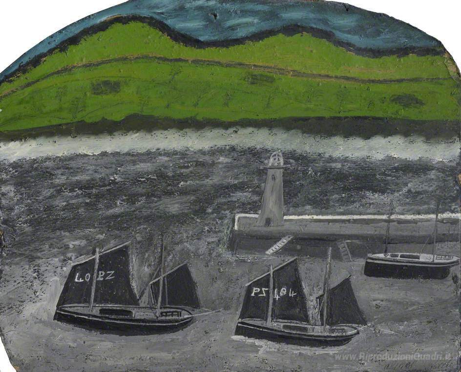 Ti offriamo una riproduzione artigianale su tela dell'opera famosa 'PZ Barca a vela da un molo' di Alfred Wallis, dal Museo delle Riproduzioni.