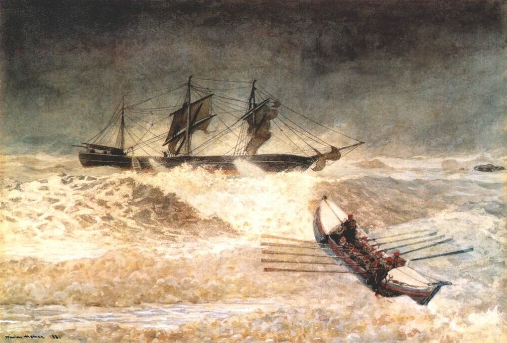 Ti offriamo una riproduzione artigianale su tela dell'opera famosa 'Relitto della corona di ferro' di Winslow Homer, dal Museo delle Riproduzioni.