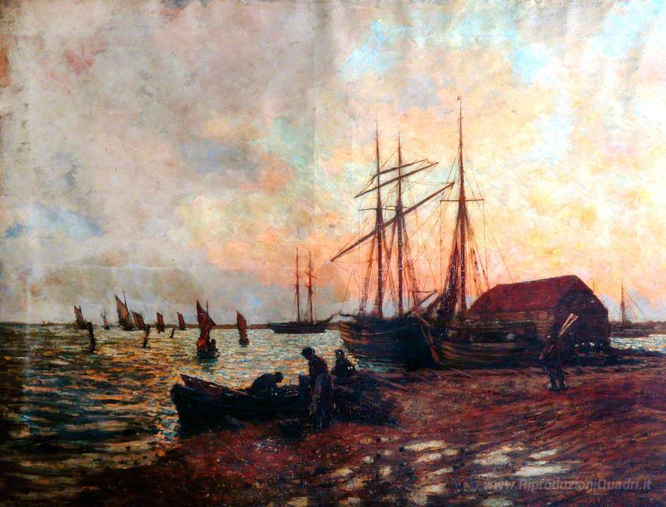Ti offriamo una riproduzione artigianale su tela dell'opera famosa 'Return of the Boat, Shoreham' di James Charles, dal Museo delle Riproduzioni.