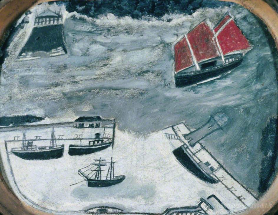 Ti offriamo una riproduzione artigianale su tela dell'opera famosa 'Schooner avvicina un porto' di Alfred Wallis, dal Museo delle Riproduzioni.