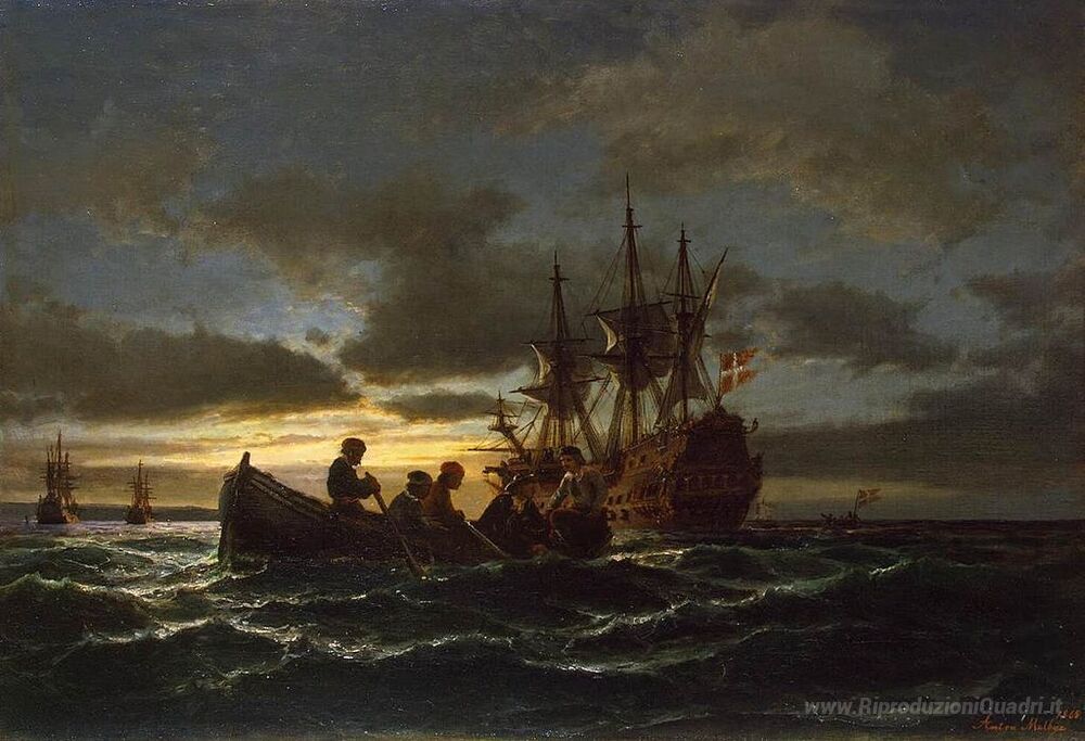 Ti offriamo una riproduzione artigianale su tela dell'opera famosa 'Sea at Night' di Anton Melbye, dal Museo delle Riproduzioni.
