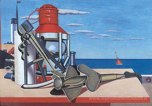 Ti offriamo una riproduzione artigianale su tela dell'opera famosa 'Servitori fedeli (Marine)' di Edward Wadsworth, dal Museo delle Riproduzioni.
