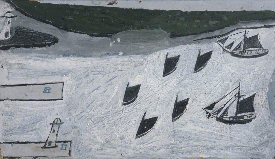 Ti offriamo una riproduzione artigianale su tela dell'opera famosa 'Sette barche Immissione Harbour' di Alfred Wallis, dal Museo delle Riproduzioni.