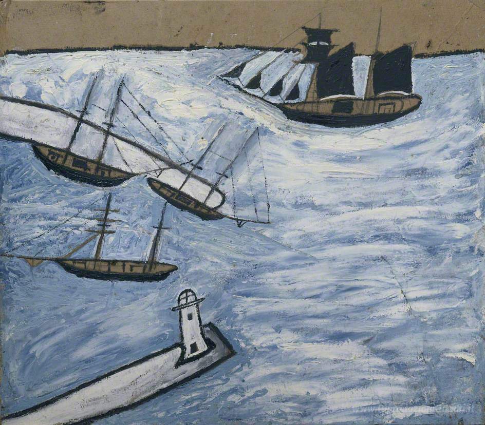 Ti offriamo una riproduzione artigianale su tela dell'opera famosa 'St. Ives Harbour, Cornovaglia' di Alfred Wallis, dal Museo delle Riproduzioni.