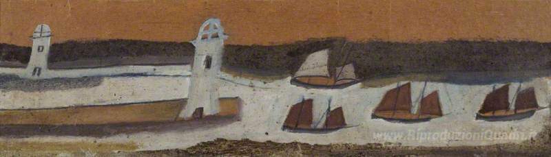 Ti offriamo una riproduzione artigianale su tela dell'opera famosa 'Stringa di Barche' di Alfred Wallis, dal Museo delle Riproduzioni.