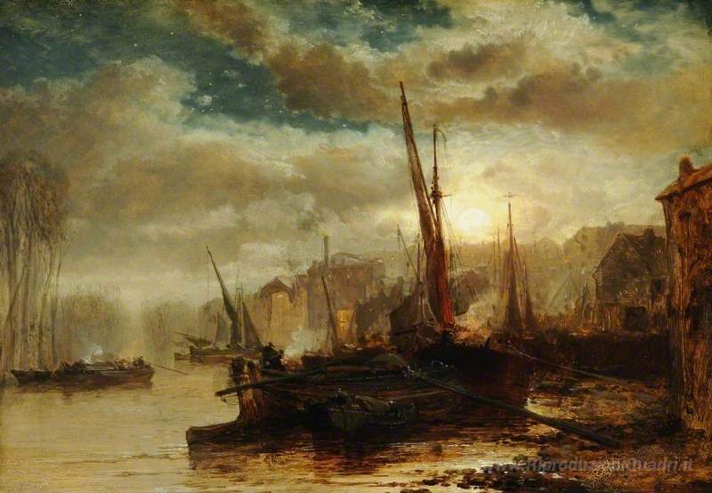 Ti offriamo una riproduzione artigianale su tela dell'opera famosa 'Sul Tamigi, nei pressi di Kew' di James Webb , dal Museo delle Riproduzioni.