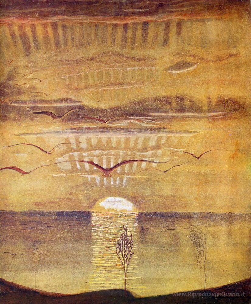 Il Tramonto è un esempio perfetto della maestria tecnica di Ciurlionis, che gioca con la luce e le ombre per evocare un'atmosfera di calma e introspezione. Questo dipinto, con le sue tonalità calde e avvolgenti, è ideale per arricchire ogni spazio, creando un ambiente sereno e accogliente. Scegliere Tramonto significa portare un pezzo di storia e bellezza artistica nella tua casa, dove ogni sguardo diventa un viaggio emozionale in un mondo di poesia visiva.