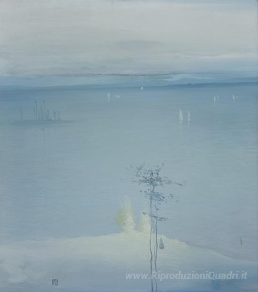 Ti offriamo una riproduzione artigianale su tela dell'opera famosa 'Tranquil Sails' di Leon Dabo, dal Museo delle Riproduzioni.