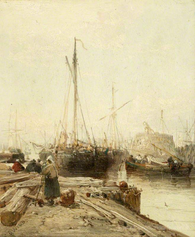 Ti offriamo una riproduzione artigianale su tela dell'opera famosa 'Un Quay con Spedizione' di James Webb , dal Museo delle Riproduzioni.
