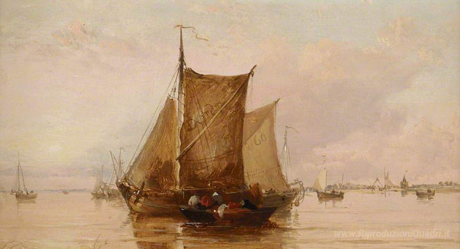 Ti offriamo una riproduzione artigianale su tela dell'opera famosa 'Una Chiatta sul Texel' di James Webb , dal Museo delle Riproduzioni.