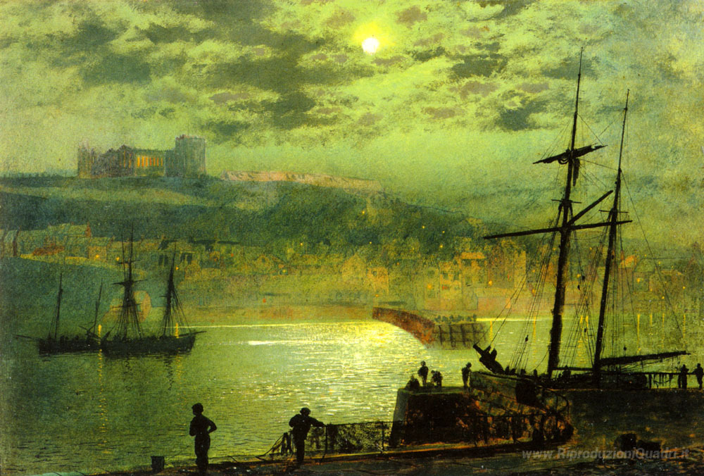 Ti offriamo una riproduzione artigianale su tela dell'opera famosa 'Whitby da Scotch Capo' di John Atkinson Grimshaw, dal Museo delle Riproduzioni.