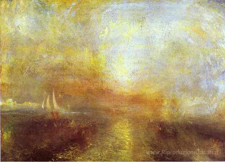 Ti offriamo una riproduzione artigianale su tela dell'opera famosa 'Yacht si avvicina alla costa' di William Turner, dal Museo delle Riproduzioni.