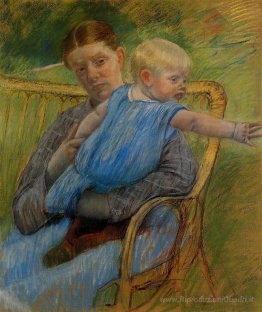 Bambino nelle sue braccia della madre, succhiare il suo dito