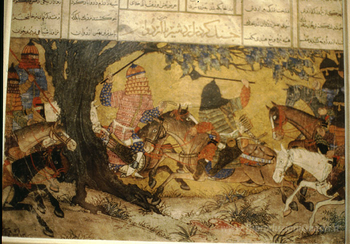 Ti offriamo una riproduzione artigianale su tela dell'opera famosa 'Ardashir combatte Bahman' di Ahmad Musa, dal Museo delle Riproduzioni.