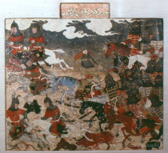 Ti offriamo una riproduzione artigianale su tela dell'opera famosa 'Darab e Rastnawan combattere la Rumis' di Ahmad Musa, dal Museo delle Riproduzioni.
