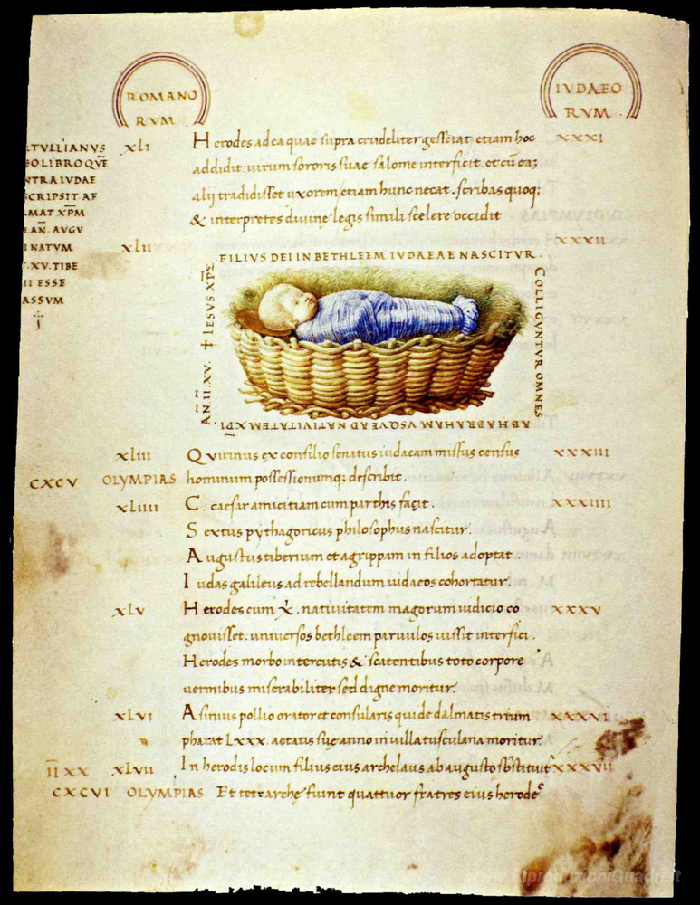 Ti offriamo una riproduzione artigianale su tela dell'opera famosa 'Il Bambino Gesù nella mangiatoia' di Andrea Mantegna, dal Museo delle Riproduzioni.