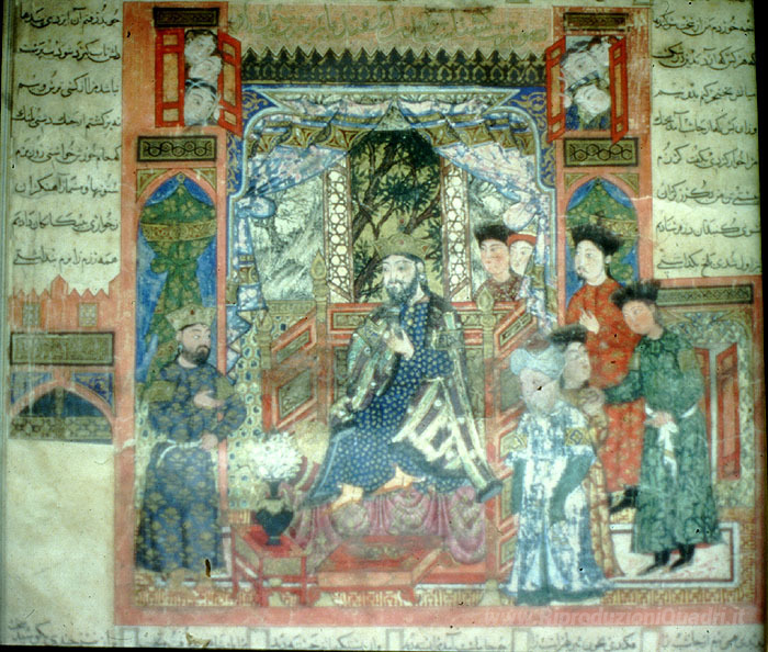 Ti offriamo una riproduzione artigianale su tela dell'opera famosa 'Isfandiyar avvicina Gushtasp' di Ahmad Musa, dal Museo delle Riproduzioni.