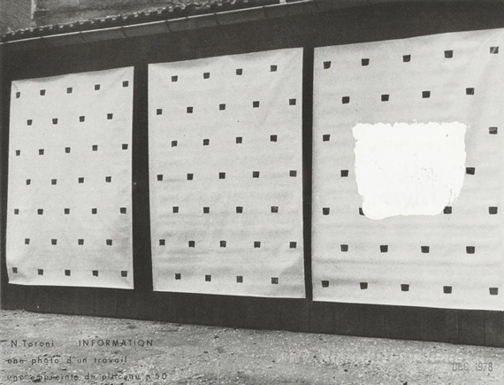Ti offriamo una riproduzione artigianale su tela dell'opera famosa 'Informazioni' di Niele Toroni, dal Museo delle Riproduzioni.