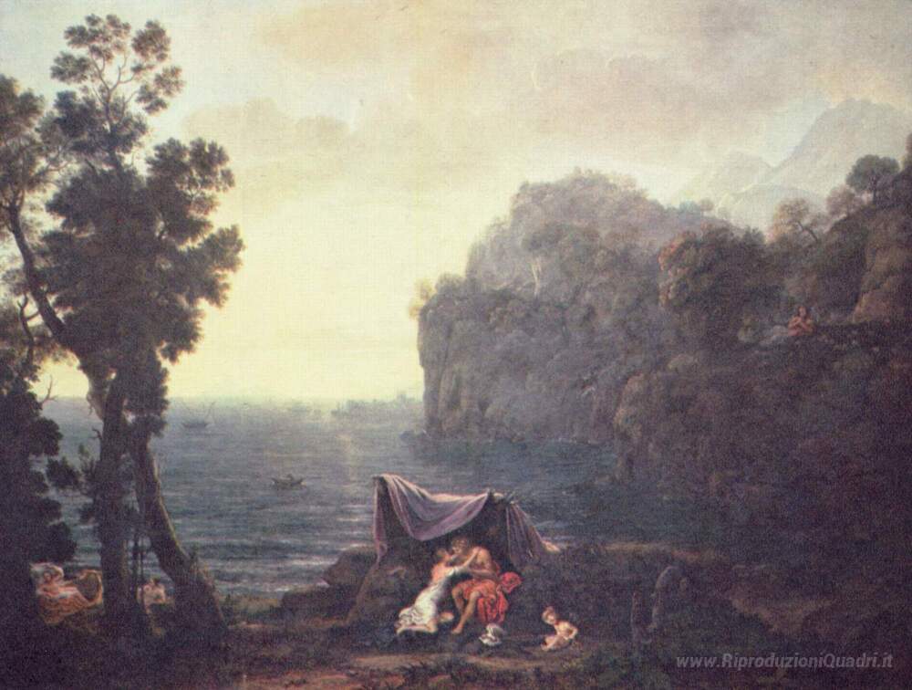 Ti offriamo una riproduzione artigianale su tela dell'opera famosa 'Aci e Galatea' di Claude Lorrain, dal Museo delle Riproduzioni.