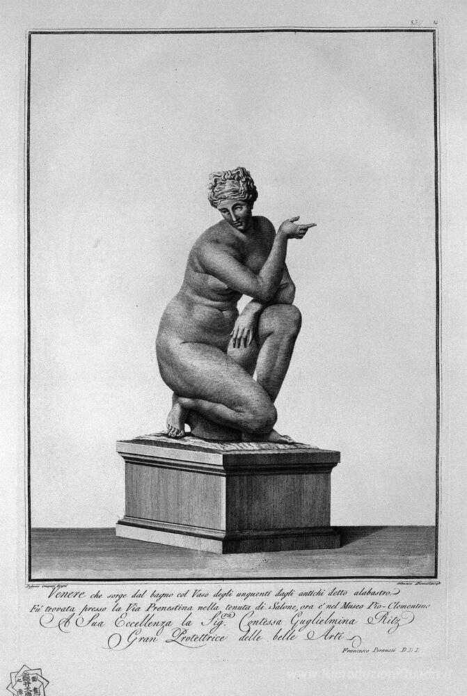 Ti offriamo una riproduzione artigianale su tela dell'opera famosa 'Afrodite accovacciata' di Giovanni Battista Piranesi, dal Museo delle Riproduzioni.