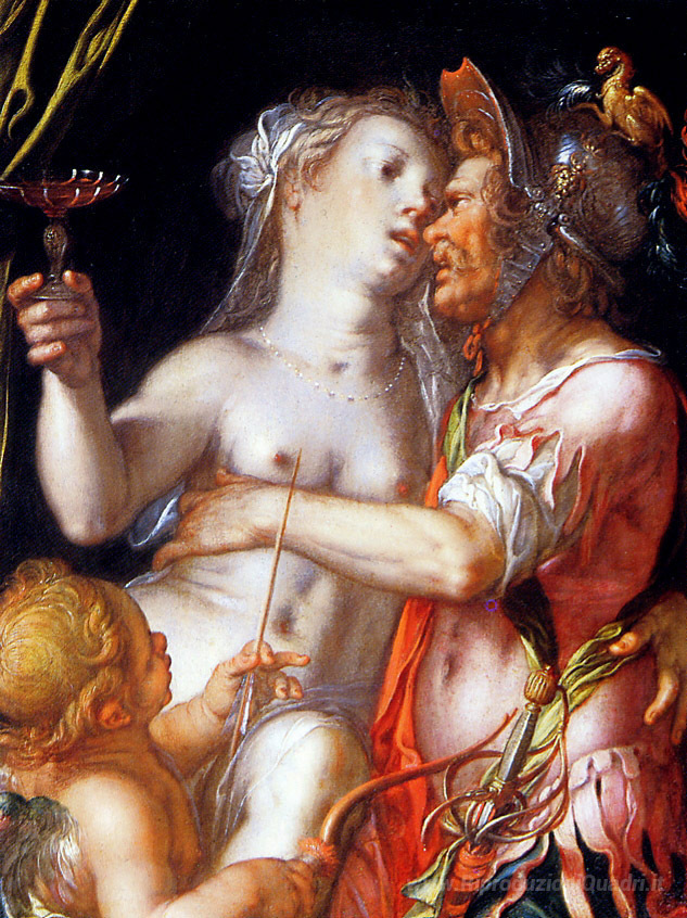 Ti offriamo una riproduzione artigianale su tela dell'opera famosa 'Afrodite Ares ed Eros Sun' di Joachim Wtewael, dal Museo delle Riproduzioni.