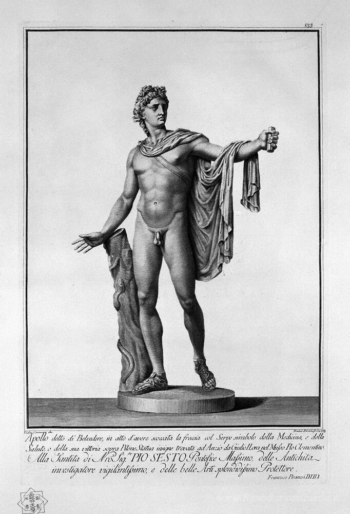 Ti offriamo una riproduzione artigianale su tela dell'opera famosa 'Apollo del Belvedere' di Giovanni Battista Piranesi, dal Museo delle Riproduzioni.