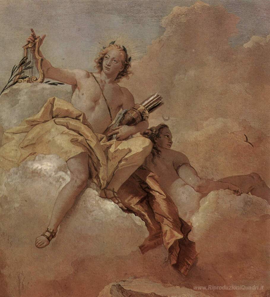 Ti offriamo una riproduzione artigianale su tela dell'opera famosa 'Apollo e Diana' di Giovanni Domenico Tiepolo, dal Museo delle Riproduzioni.