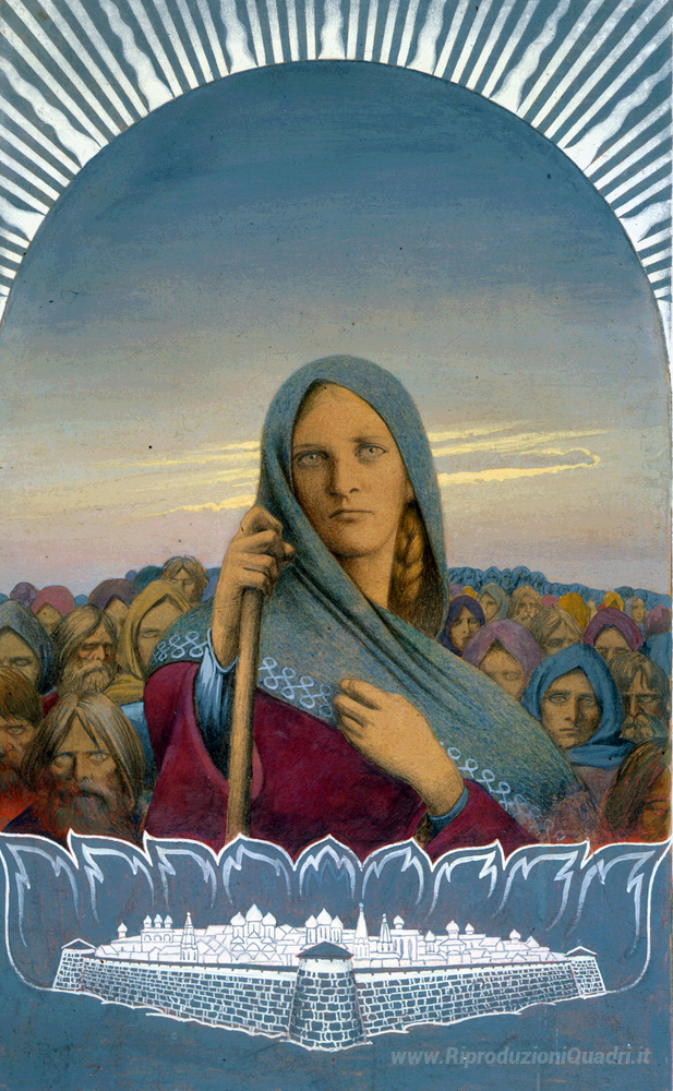 Benvenuti nel nostro prestigioso catalogo di dipinti a olio, dove arte e cultura italiana si fondono in una selezione di opere uniche. Oggi vi presentiamo Avdotya-Ryazanochka, un capolavoro dell'artista russo Konstantin Vasilyev, noto per la sua abilità nel catturare emozioni attraverso l'uso sapiente del colore e della luce. Vasilyev, influenzato dalla natura e dalla cultura slava, infonde nei suoi dipinti un senso di profondità e contemplazione, rendendo ogni opera un viaggio nell'anima umana.