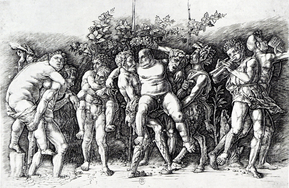 Ti offriamo una riproduzione artigianale su tela dell'opera famosa 'Baccanale a Silene' di Andrea Mantegna, dal Museo delle Riproduzioni.