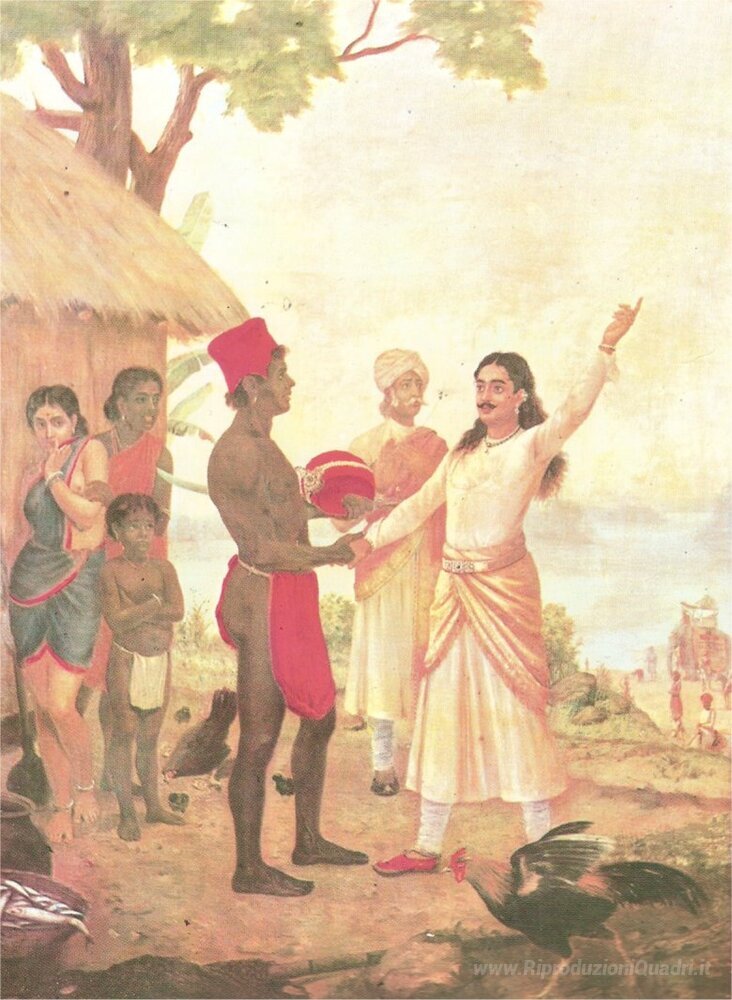 Immerso nella tradizione dell'arte indiana, Bheeshma giuramento è un capolavoro del rinomato artista Raja Ravi Varma. Conosciuto per la sua abilità nell'unire la mitologia e la vita quotidiana, Varma ha saputo catturare l'essenza delle storie epiche, rendendole accessibili e affascinanti. Il suo tratto distintivo si manifesta nella ricchezza dei colori e nella profondità espressiva dei volti, elementi che conferiscono a ogni opera un'impronta di autenticità e poesia.