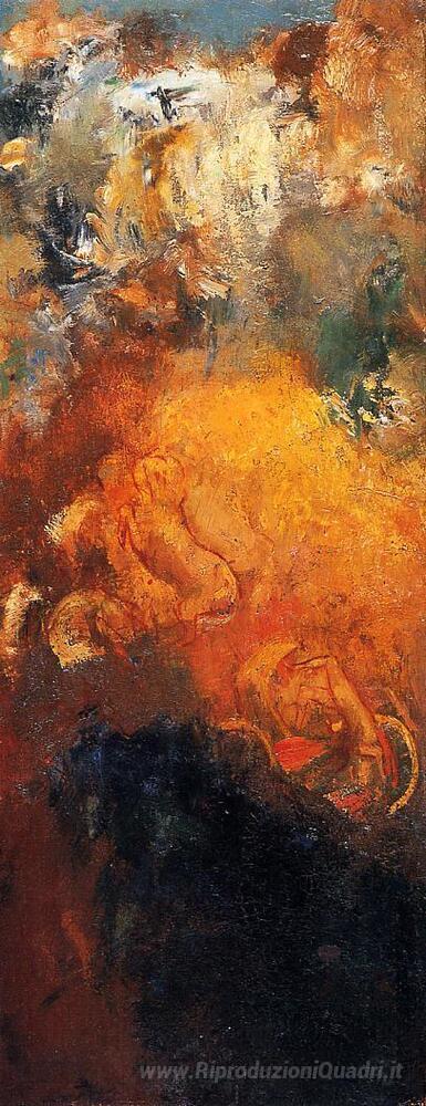 Ti offriamo una riproduzione artigianale su tela dell'opera famosa 'Carro di Apollo' di Odilon Redon, dal Museo delle Riproduzioni.