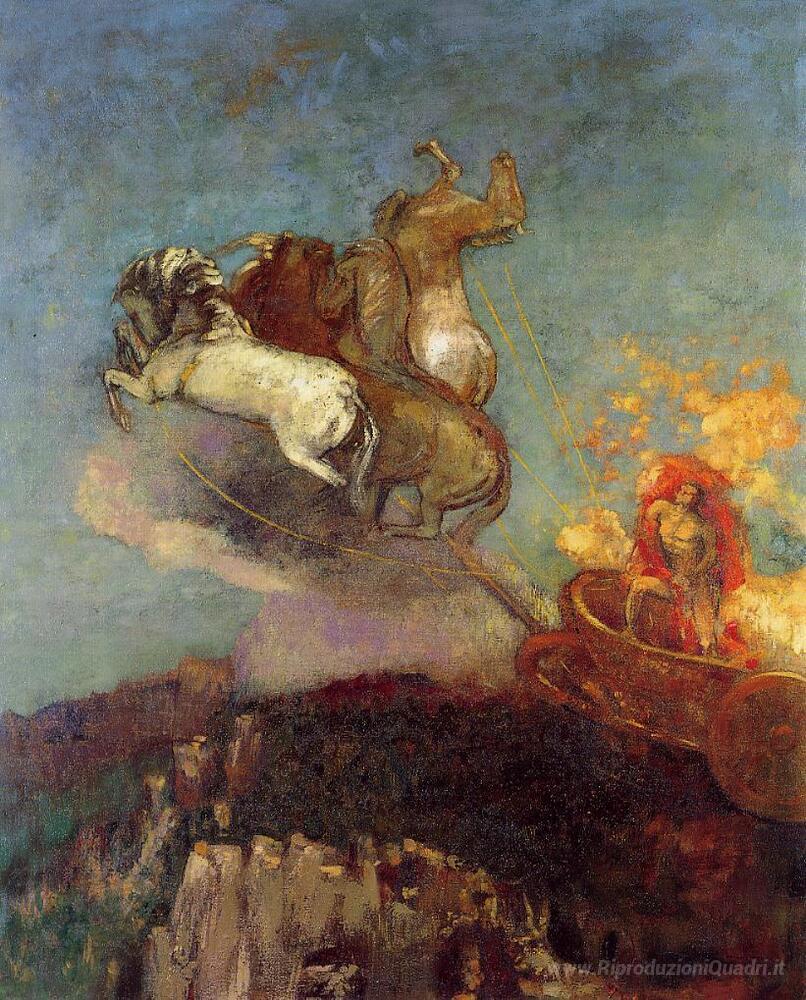 Ti offriamo una riproduzione artigianale su tela dell'opera famosa 'Carro di Apollo' di Odilon Redon, dal Museo delle Riproduzioni.