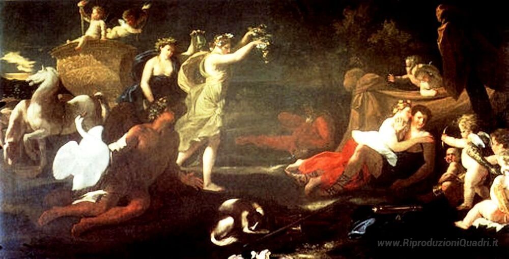Ti offriamo una riproduzione artigianale su tela dell'opera famosa 'Cefalo e Aurora' di Nicolas Poussin, dal Museo delle Riproduzioni.