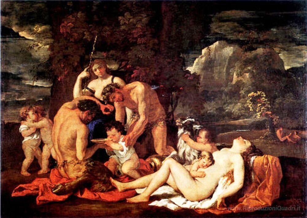 Ti offriamo una riproduzione artigianale su tela dell'opera famosa 'Coltiva di Bacco' di Nicolas Poussin, dal Museo delle Riproduzioni.