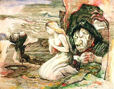Ti offriamo una riproduzione artigianale su tela dell'opera famosa 'Da un Folklore' di Asgrimur Jonsson, dal Museo delle Riproduzioni.