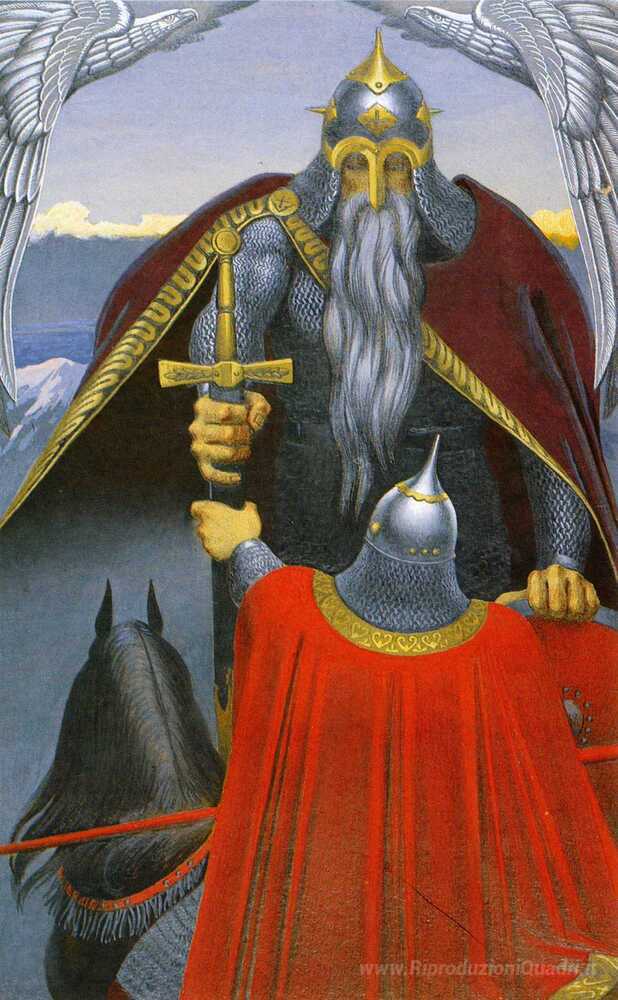 Ti offriamo una riproduzione artigianale su tela dell'opera famosa 'Dono di Svjatogor' di Konstantin Vasilyev, dal Museo delle Riproduzioni.